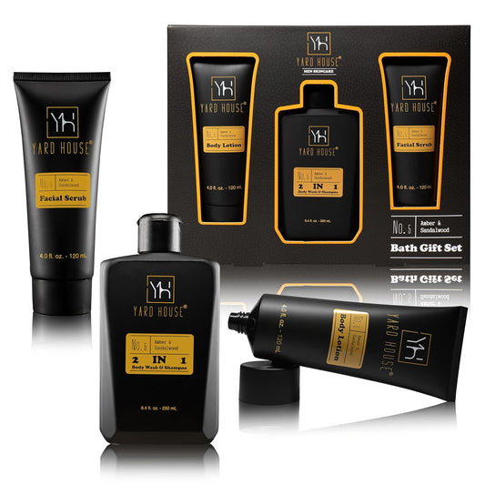 3Pc All Natural Mens Bath and Body Gift Set - Sandalwood Amber